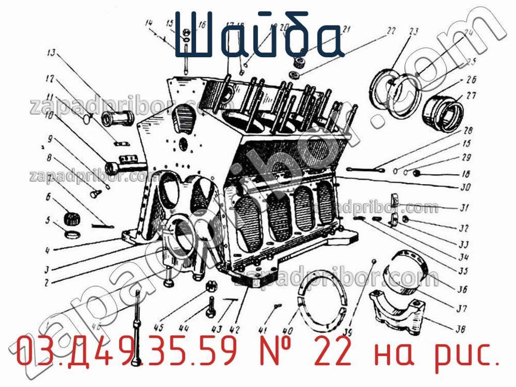 Наш отдел технического контроля дает гарантию отсутствия брака или других несоответствий в технической документации у всех шайб представленных на нашем сайте. Чтобы приобрести 03.Д49.35.59 обратитесь в отдел продаж. Информацию о цене, наличии, сроках поставки, гарантии можно узнать у наших менеджеров. Шайба, номер 22 на чертеже, Блок цилиндров 3А-6Д49.35спч и другие запасные части для 49 (Ч 26/26) , а также другие шайбы и похожие изделия представлены на сайте zapadpribor.com.