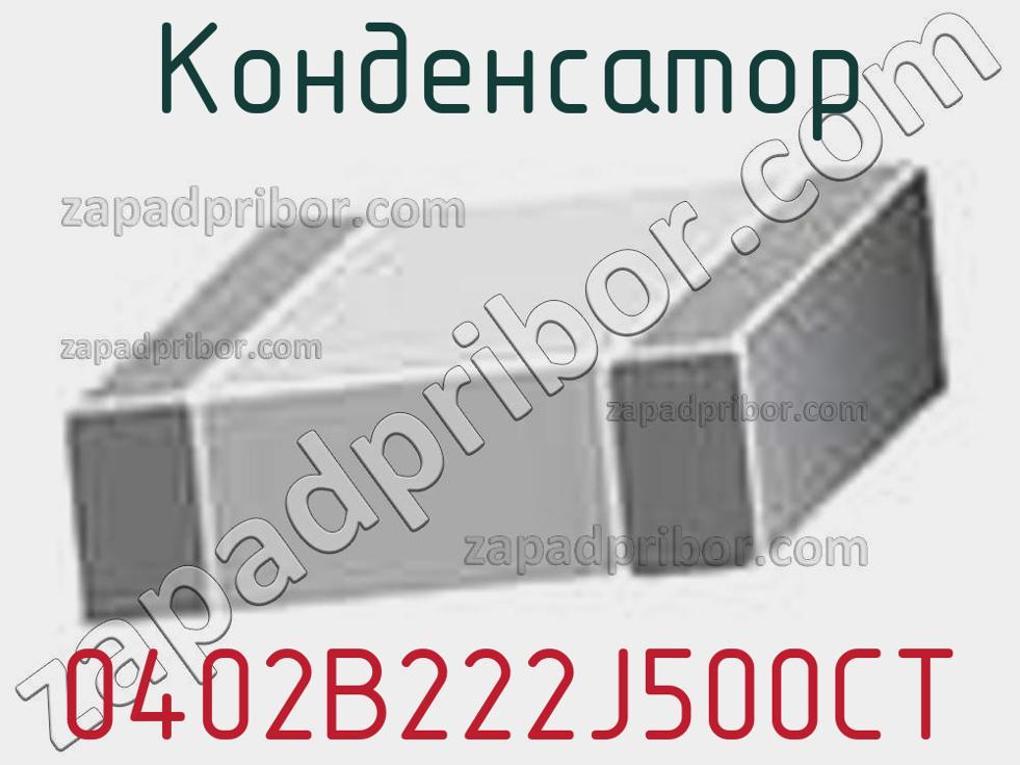 Называют это изделие также 0402-B222J500CT, 0402 B222J500CT, 0402B222J500CT, 0402-B222J500CT,0402 B222J500CT.