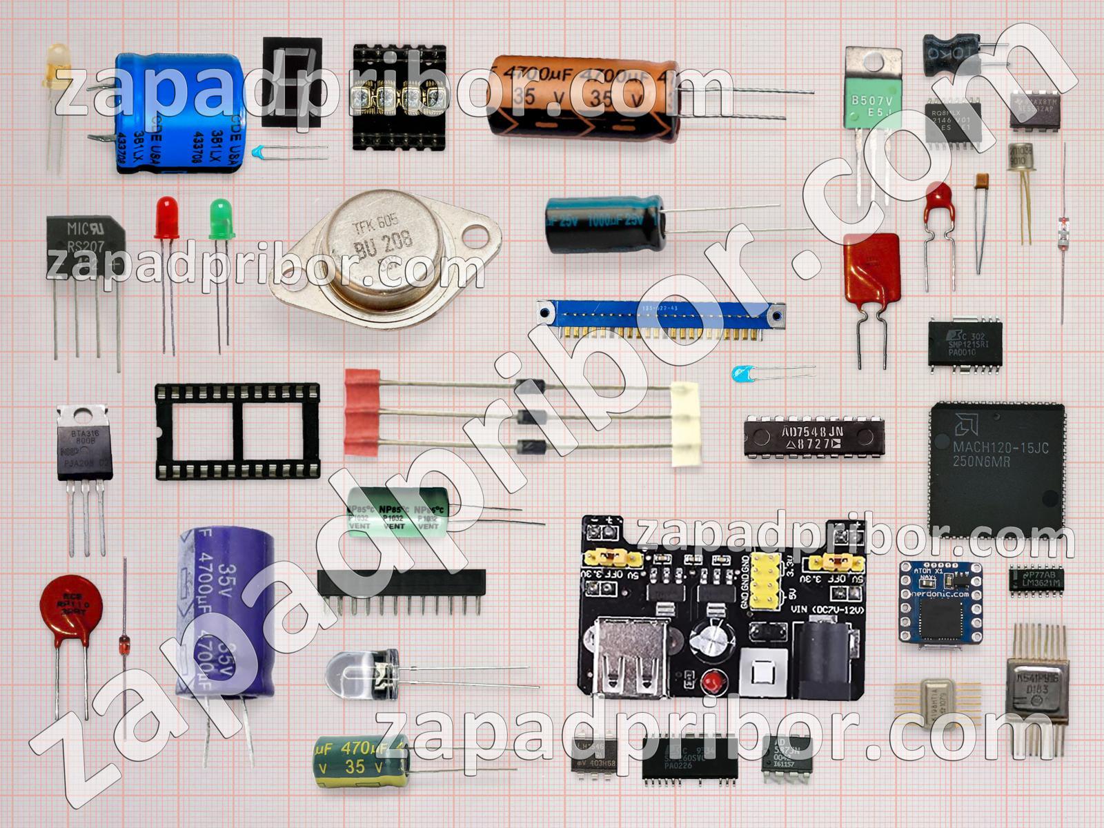 Кроме этих радиодеталей на нашем сайте вы сможете найти большой перечень компонентов. Осуществляйте поиск по основным типам радиодеталей таких как контакты, тиристор, тумблер, дисплей, колодки, реле, разъем, резонатор, усилитель, индикатор, индуктивность, кнопка, переключатель, диодный мост, транзистор, микросхема, трансформатор, датчик, соединитель, резистор, дроссель, преобразователь, адаптер, фотодиод, конденсатор, экран, светодиод, диод и другие.