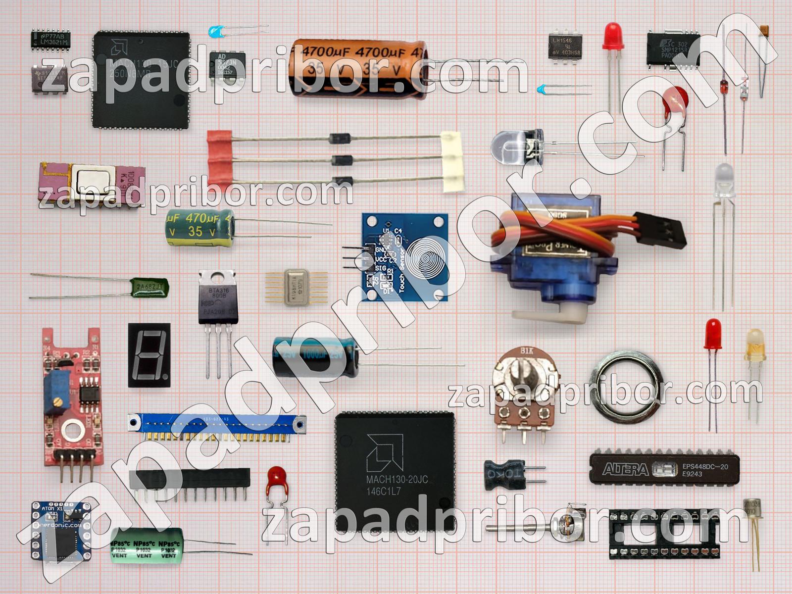 Кроме этих радиодеталей на нашем сайте вы сможете найти большой перечень компонентов. Осуществляйте поиск по основным типам радиодеталей таких как микросхема, контакты, дроссель, светодиод, кнопка, конденсатор, транзистор, диод, резонатор, преобразователь, колодки, тиристор, индикатор, тумблер, переключатель, датчик, адаптер, резистор, разъем, реле, трансформатор, индуктивность, усилитель, фотодиод, соединитель, экран, диодный мост, дисплей и другие.