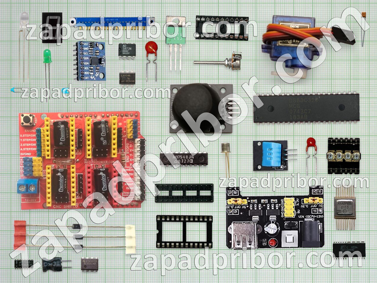 Кроме этих радиодеталей на нашем сайте вы сможете найти большой перечень компонентов. Осуществляйте поиск по основным типам радиодеталей таких как соединитель, светодиод, транзистор, дроссель, трансформатор, индуктивность, микросхема, экран, резистор, тумблер, фотодиод, диодный мост, переключатель, диод, датчик, индикатор, преобразователь, усилитель, тиристор, резонатор, адаптер, конденсатор, кнопка, дисплей, контакты, разъем, колодки, реле и другие.