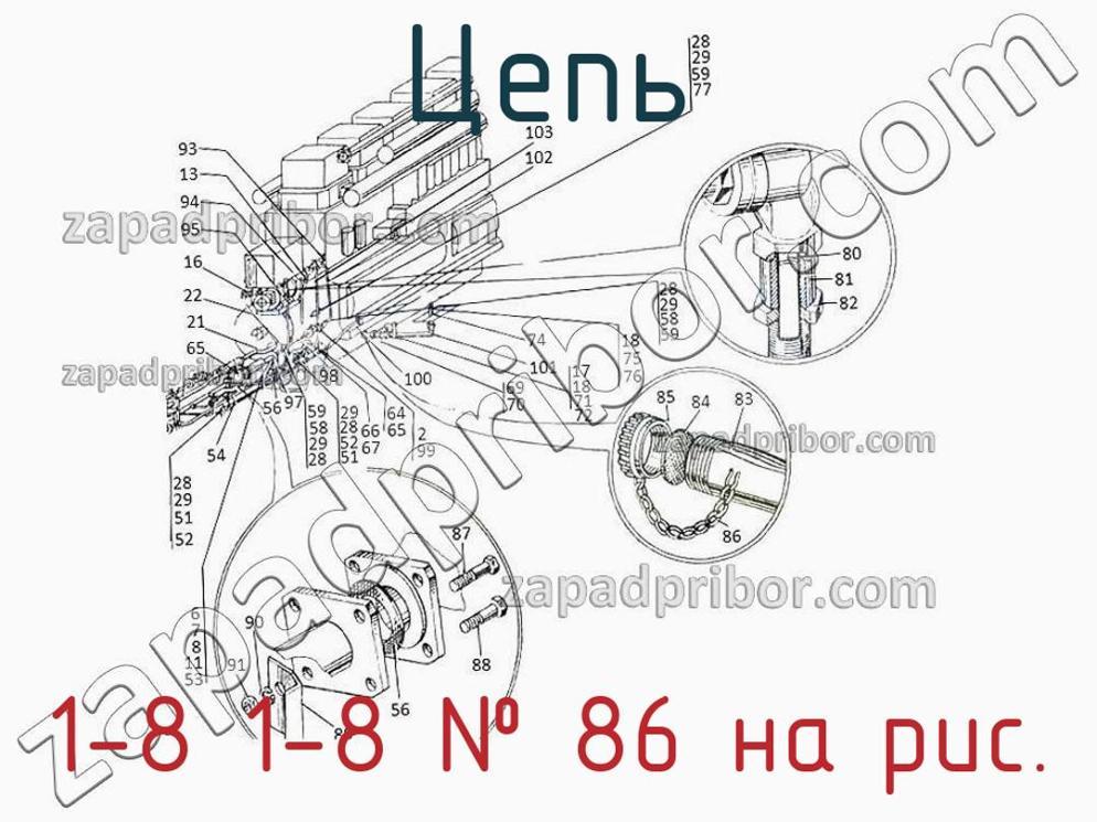 Мы даем гарантию на отсутствие брака или других несоответствий технической документации. Для приобретения 1-8 1-8 обращайтесь в наш отдел продаж. Информацию о цене, наличию, срокам доставки, гарантии и любые другие вопросы уточняйте у наших менеджеров. Цепь 1-8 Цепь 1-8, номер 86 на чертеже, Трубопровод маслянной системы часть 2 ТЭМ2.20.30.003 и другие запасные части для , а также другие цепи и похожие изделия представлены на сайте zapadpribor.com.