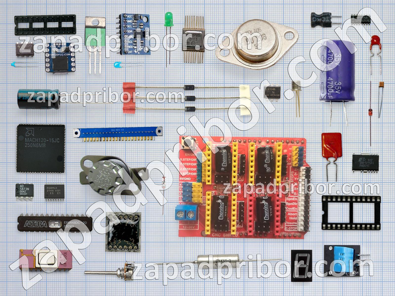 Кроме этих радиодеталей на нашем сайте вы сможете найти большой перечень компонентов. Осуществляйте поиск по основным типам радиодеталей таких как контакты, разъем, реле, светодиод, колодки, соединитель, усилитель, транзистор, тумблер, индуктивность, преобразователь, резистор, дисплей, тиристор, диод, фотодиод, экран, дроссель, переключатель, микросхема, датчик, резонатор, трансформатор, диодный мост, адаптер, индикатор, конденсатор, кнопка и другие.
