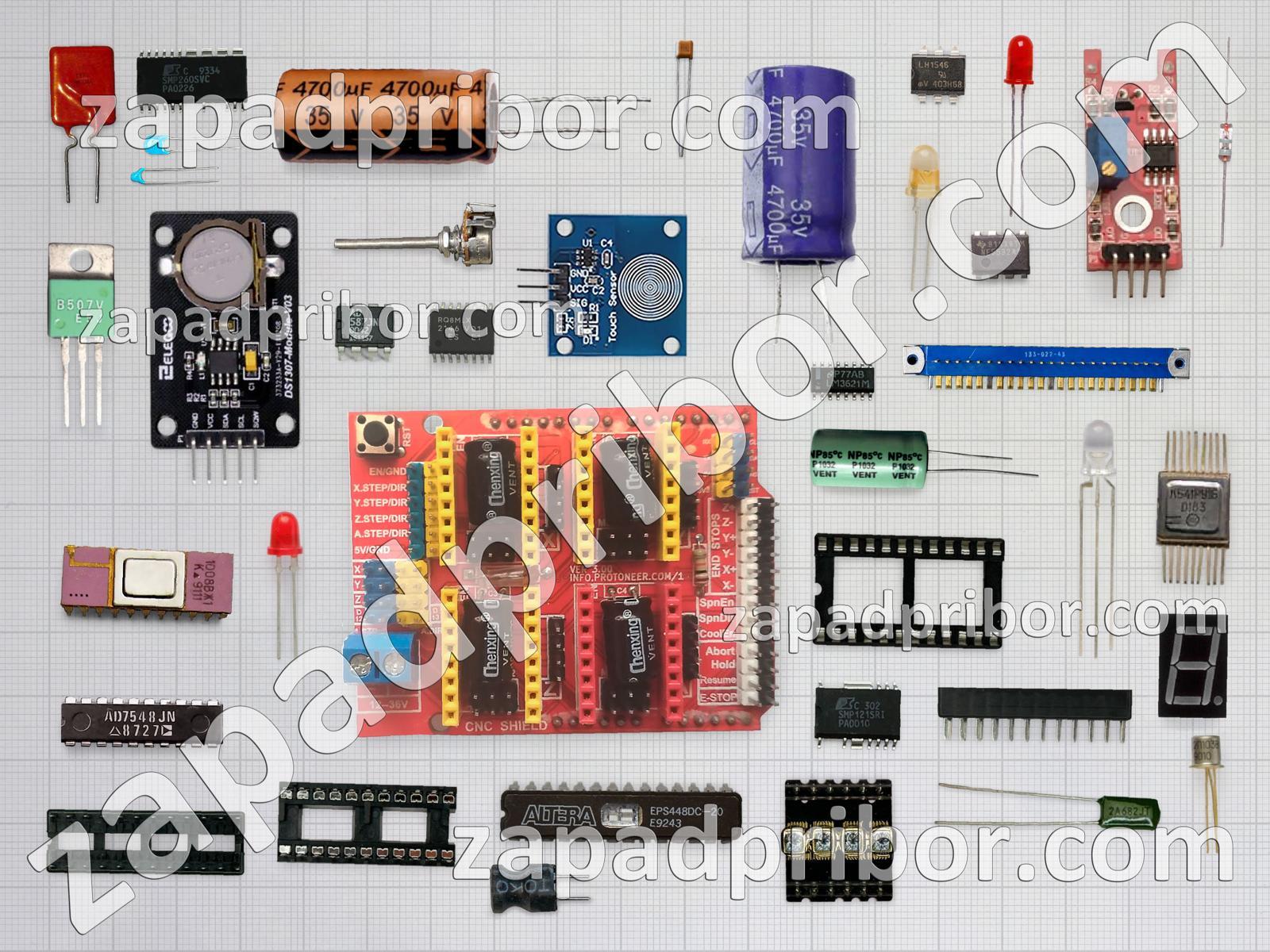 Кроме этих радиодеталей на нашем сайте вы сможете найти большой перечень компонентов. Осуществляйте поиск по основным типам радиодеталей таких как колодки, усилитель, контакты, разъем, диодный мост, резонатор, адаптер, трансформатор, дисплей, кнопка, дроссель, светодиод, транзистор, преобразователь, индикатор, диод, датчик, соединитель, тумблер, тиристор, экран, фотодиод, микросхема, конденсатор, переключатель, индуктивность, реле, резистор и другие.