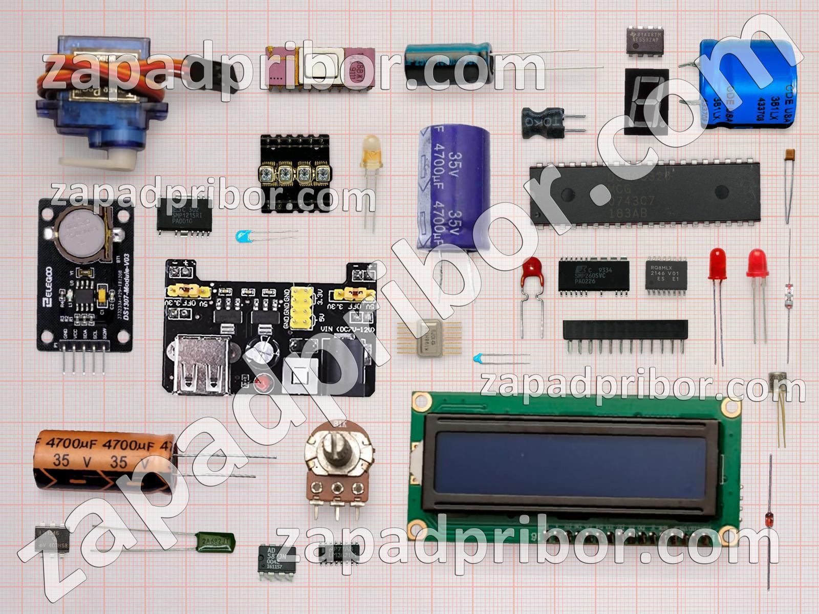 Кроме этих радиодеталей на нашем сайте вы сможете найти большой перечень компонентов. Осуществляйте поиск по основным типам радиодеталей таких как колодки, дисплей, диод, тиристор, дроссель, индикатор, усилитель, кнопка, переключатель, трансформатор, экран, диодный мост, резонатор, датчик, разъем, транзистор, фотодиод, резистор, соединитель, адаптер, контакты, микросхема, тумблер, преобразователь, реле, индуктивность, конденсатор, светодиод и другие.