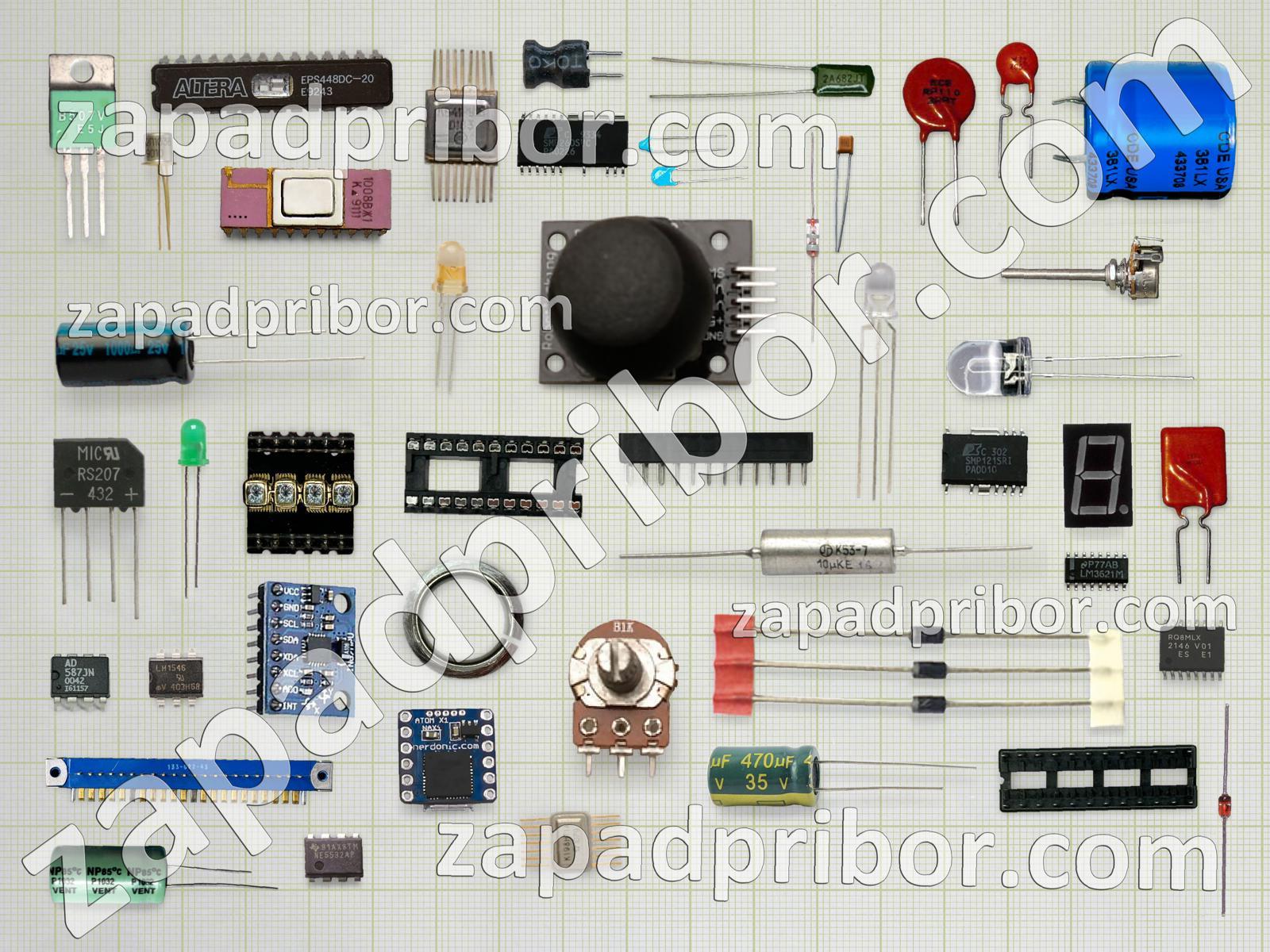 Кроме этих радиодеталей на нашем сайте вы сможете найти большой перечень компонентов. Осуществляйте поиск по основным типам радиодеталей таких как экран, диод, тумблер, соединитель, кнопка, резистор, индикатор, адаптер, усилитель, светодиод, контакты, реле, микросхема, дроссель, индуктивность, трансформатор, тиристор, резонатор, переключатель, дисплей, колодки, транзистор, конденсатор, фотодиод, преобразователь, датчик, диодный мост, разъем и другие.