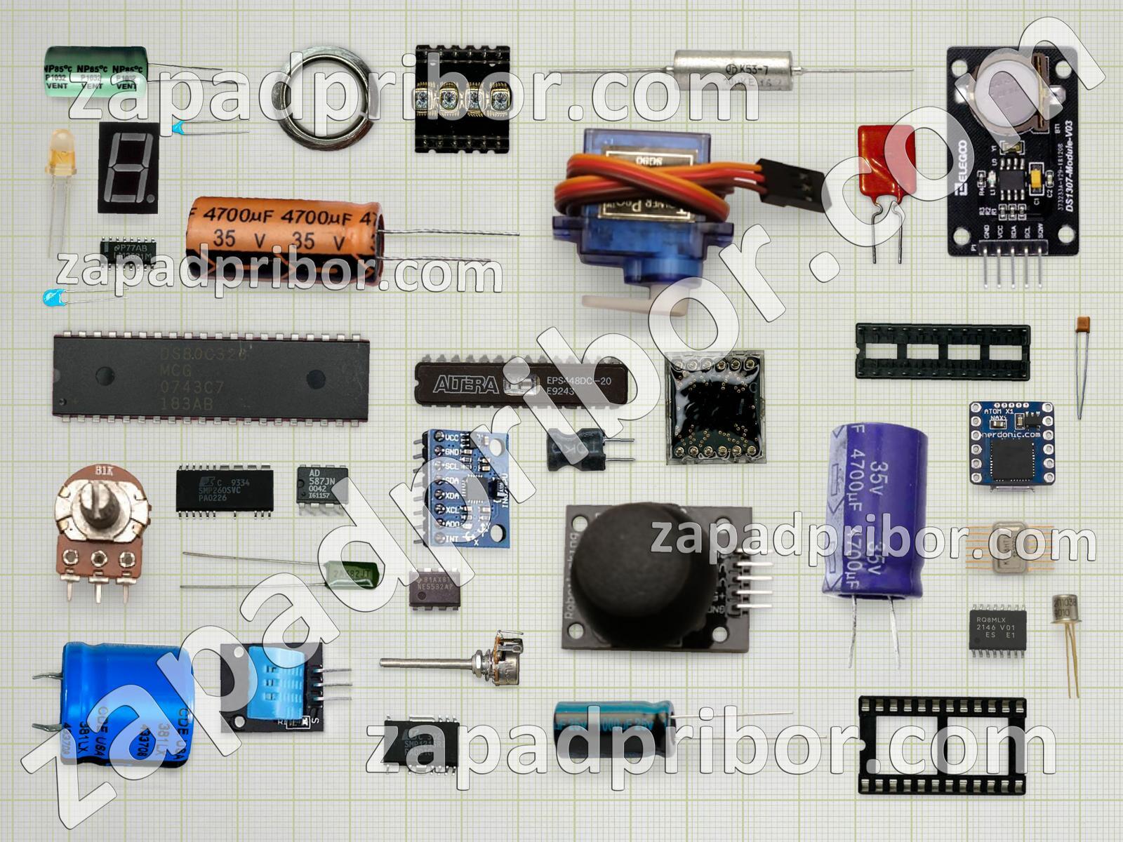 Кроме этих радиодеталей на нашем сайте вы сможете найти большой перечень компонентов. Осуществляйте поиск по основным типам радиодеталей таких как микросхема, резонатор, дроссель, фотодиод, диодный мост, индикатор, дисплей, тиристор, контакты, резистор, переключатель, преобразователь, колодки, соединитель, индуктивность, конденсатор, адаптер, реле, кнопка, тумблер, усилитель, датчик, экран, разъем, светодиод, транзистор, диод, трансформатор и другие.