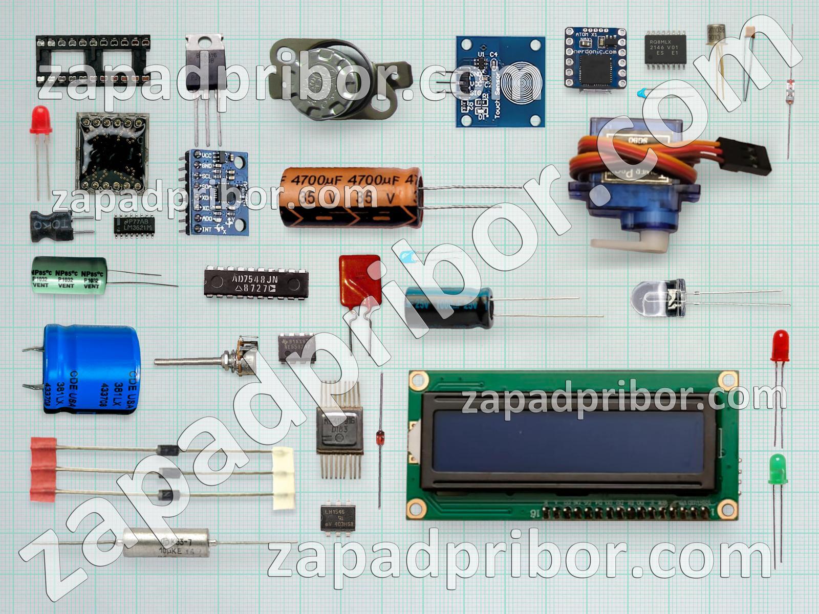 Кроме этих радиодеталей на нашем сайте вы сможете найти большой перечень компонентов. Осуществляйте поиск по основным типам радиодеталей таких как соединитель, резонатор, светодиод, дисплей, разъем, диодный мост, конденсатор, дроссель, адаптер, индуктивность, контакты, тумблер, резистор, переключатель, колодки, фотодиод, индикатор, датчик, диод, кнопка, преобразователь, трансформатор, усилитель, транзистор, реле, микросхема, тиристор, экран и другие.