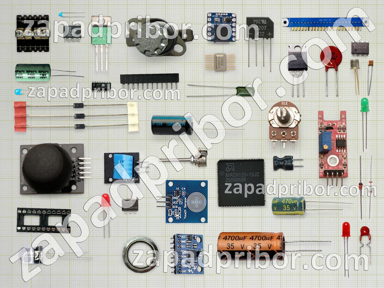 Кроме этих радиодеталей на нашем сайте вы сможете найти большой перечень компонентов. Осуществляйте поиск по основным типам радиодеталей таких как диодный мост, дисплей, переключатель, дроссель, тумблер, контакты, индикатор, диод, резистор, разъем, транзистор, экран, датчик, преобразователь, фотодиод, резонатор, реле, индуктивность, трансформатор, тиристор, соединитель, кнопка, усилитель, адаптер, конденсатор, колодки, светодиод, микросхема и другие.