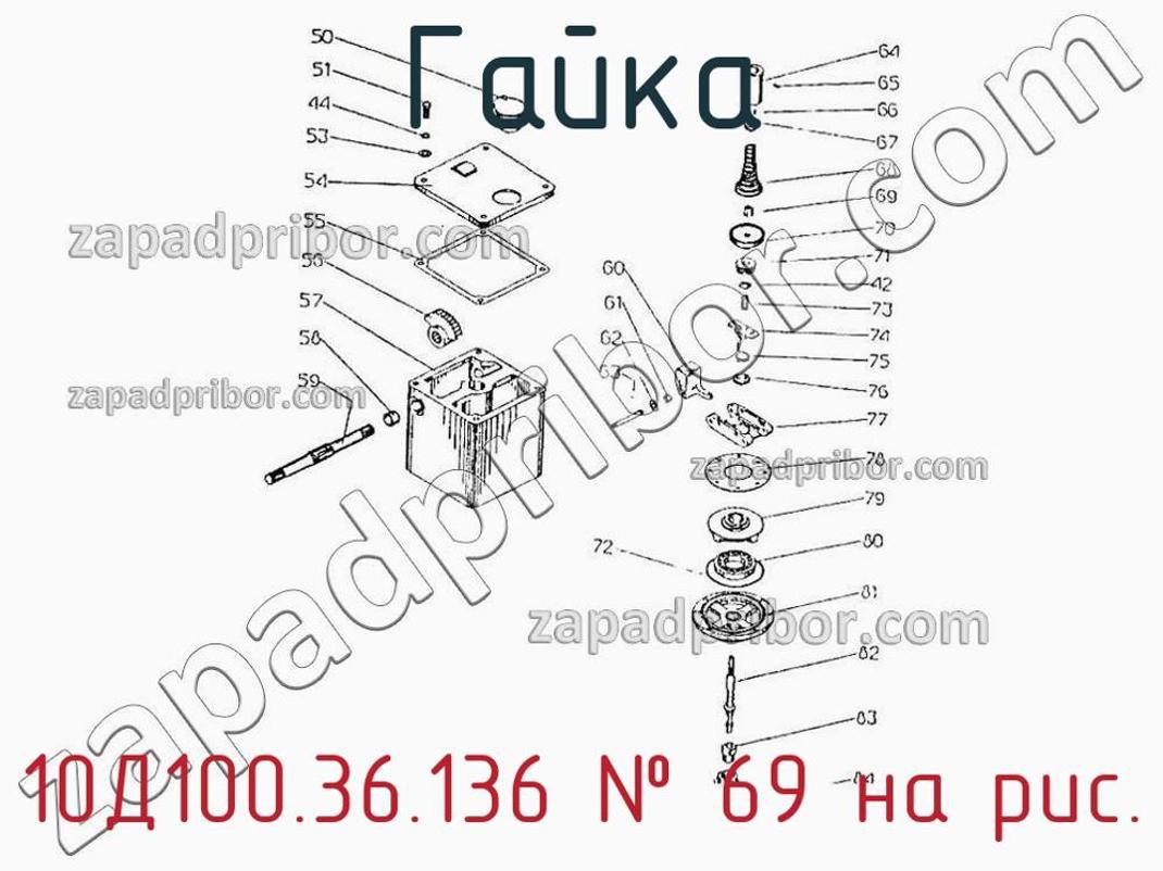 Наш отдел технического контроля дает гарантию отсутствия брака или других несоответствий в технической документации у всех гаек представленных на нашем сайте. Чтобы приобрести 10Д100.36.136 обратитесь в отдел продаж. Информацию о цене, наличии, сроках поставки, гарантии можно узнать у наших менеджеров. Гайка 10Д100.36.136, номер 69 на чертеже, Регулятор частоты вращения 36гр.-041 и другие запасные части для ПДГ4А) , а также другие гайки и похожие изделия представлены на сайте zapadpribor.com.