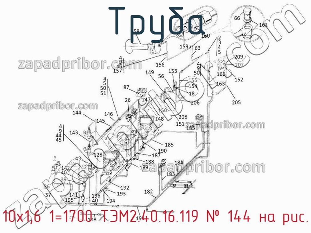 Наш отдел технического контроля перед отгрузкой тестирует каждый прибор в лаборатории на соответствие всем техническим характеристикам и требованиям. Чтобы заказать 10х1,6 1=1700 ТЭМ2.40.16.119 свяжитесь с нашим отделом продаж. Также вы всегда можете позвонить нашим менеджерам чтобы получить более подробную информацию. Труба 10х1,6 1=1700 ТЭМ2.40.16.119, номер 144 на чертеже, Трубопровод автоматики часть 2 ТЭМ2Т.40.12.000 и другие запасные части для , а также другие трубы и похожие изделия представлены на сайте zapadpribor.com.