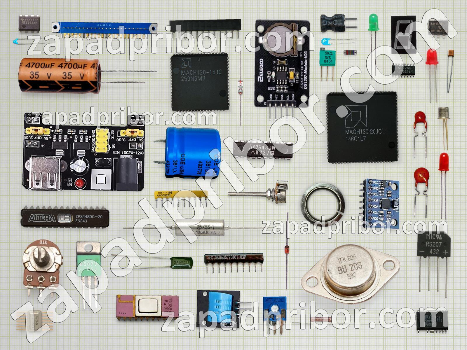Кроме этих радиодеталей на нашем сайте вы сможете найти большой перечень компонентов. Осуществляйте поиск по основным типам радиодеталей таких как диод, светодиод, фотодиод, диодный мост, дисплей, контакты, адаптер, кнопка, усилитель, тиристор, датчик, переключатель, транзистор, соединитель, тумблер, трансформатор, разъем, колодки, конденсатор, дроссель, микросхема, индуктивность, реле, преобразователь, резонатор, экран, резистор, индикатор и другие.