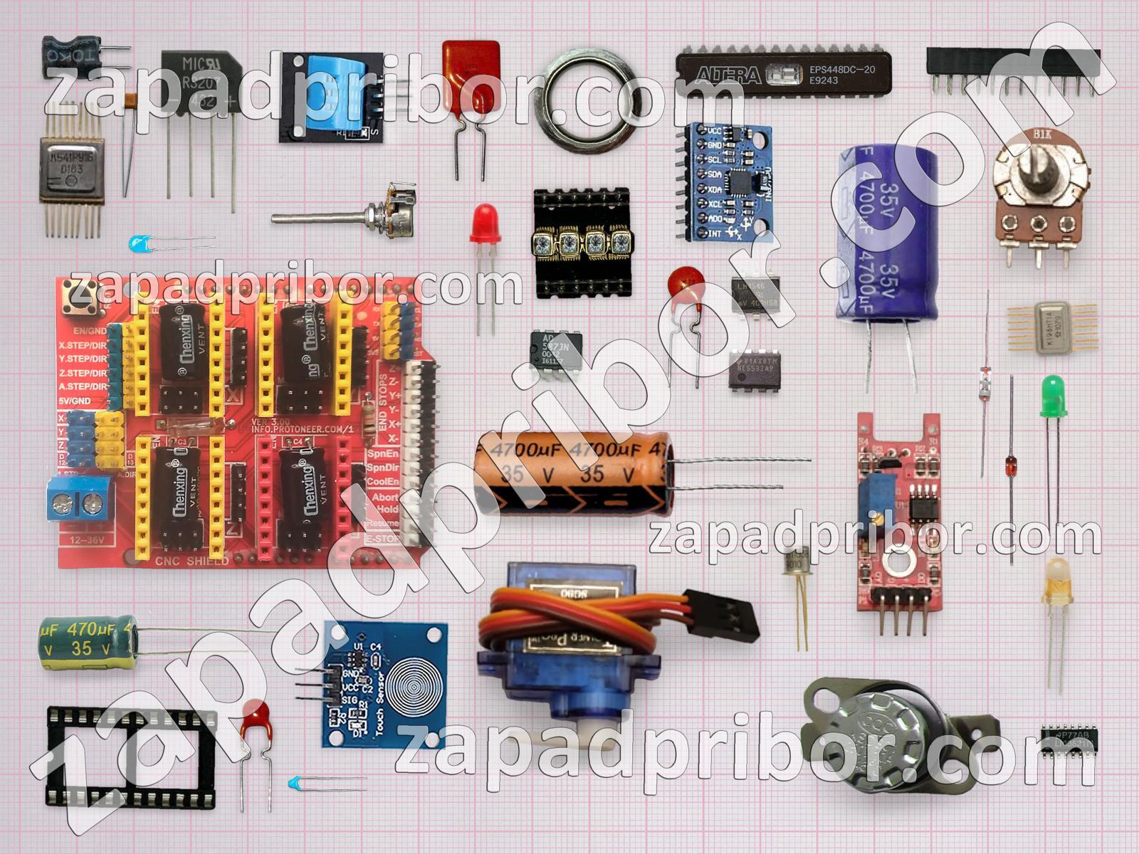 Кроме этих радиодеталей на нашем сайте вы сможете найти большой перечень компонентов. Осуществляйте поиск по основным типам радиодеталей таких как резонатор, экран, контакты, конденсатор, разъем, переключатель, диод, трансформатор, индуктивность, соединитель, фотодиод, резистор, светодиод, дроссель, колодки, транзистор, тиристор, реле, датчик, диодный мост, преобразователь, тумблер, кнопка, индикатор, дисплей, усилитель, микросхема, адаптер и другие.