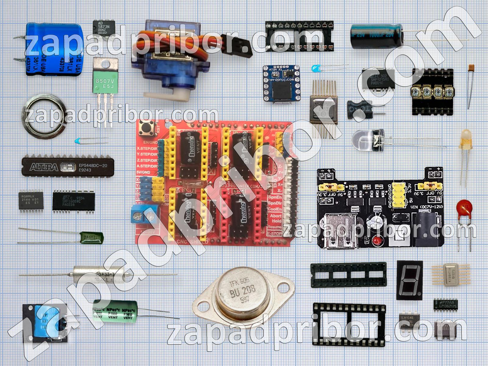 Кроме этих радиодеталей на нашем сайте вы сможете найти большой перечень компонентов. Осуществляйте поиск по основным типам радиодеталей таких как индуктивность, кнопка, датчик, переключатель, резистор, резонатор, диод, колодки, индикатор, тиристор, контакты, адаптер, светодиод, диодный мост, тумблер, транзистор, трансформатор, фотодиод, дроссель, дисплей, преобразователь, реле, усилитель, микросхема, экран, соединитель, конденсатор, разъем и другие.