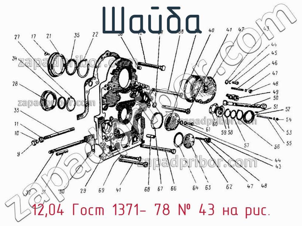 Мы даем гарантию на отсутствие брака или других несоответствий технической документации. По вопросам приобретения 12,04 Гост 1371- 78 обращайтесь в отдел продаж. Наши менеджеры предоставят всю интересующую Вас информацию по поводу цены, наличия, сроков доставки, гарантии или ответят на любые другие вопросы. Шайба, номер 43 на чертеже, Привод распределительного вала 3А-6Д49.69спч и другие запасные части для 49 (Ч 26/26) , а также другие шайбы и похожие изделия представлены на сайте zapadpribor.com.
