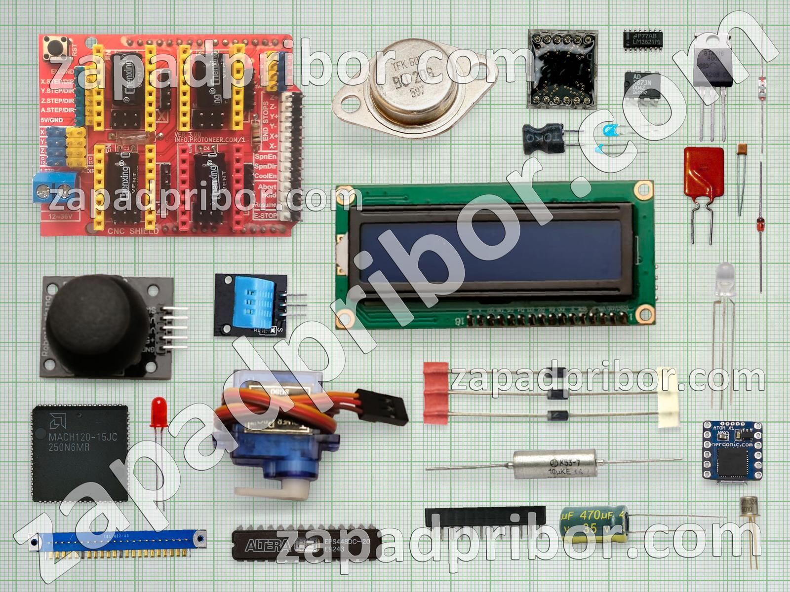 Кроме этих радиодеталей на нашем сайте вы сможете найти большой перечень компонентов. Осуществляйте поиск по основным типам радиодеталей таких как диод, транзистор, микросхема, резистор, индуктивность, индикатор, усилитель, диодный мост, тиристор, датчик, адаптер, конденсатор, соединитель, фотодиод, тумблер, резонатор, преобразователь, трансформатор, кнопка, экран, дроссель, разъем, переключатель, реле, светодиод, контакты, колодки, дисплей и другие.