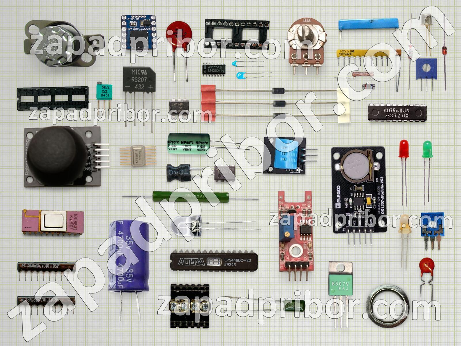 Кроме этих радиодеталей на нашем сайте вы сможете найти большой перечень компонентов. Осуществляйте поиск по основным типам радиодеталей таких как разъем, индуктивность, кнопка, дроссель, дисплей, резистор, соединитель, светодиод, переключатель, тумблер, диод, трансформатор, преобразователь, колодки, датчик, микросхема, контакты, усилитель, конденсатор, адаптер, экран, индикатор, диодный мост, тиристор, реле, фотодиод, резонатор, транзистор и другие.