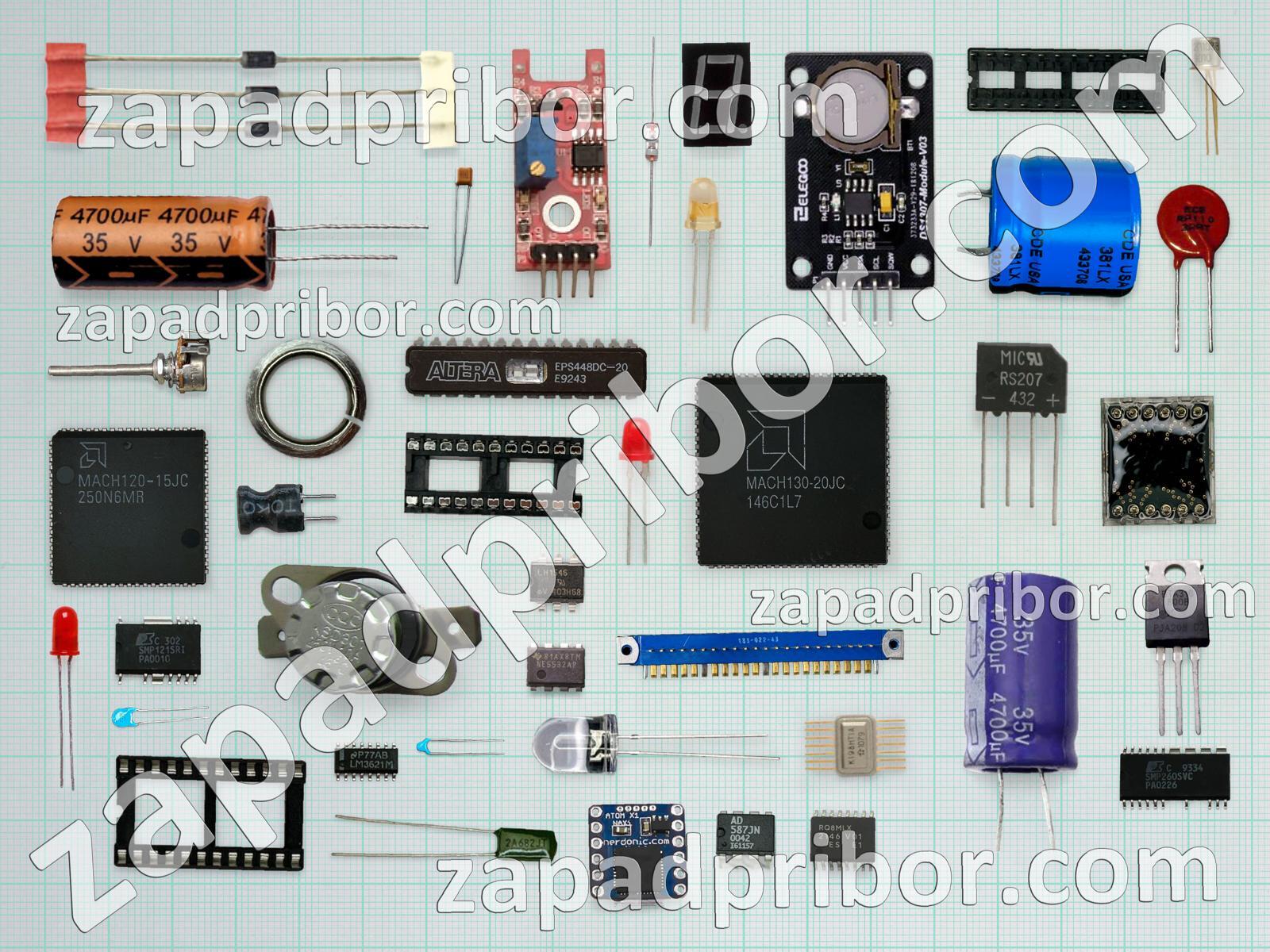Кроме этих радиодеталей на нашем сайте вы сможете найти большой перечень компонентов. Осуществляйте поиск по основным типам радиодеталей таких как микросхема, индуктивность, фотодиод, дисплей, тиристор, светодиод, резистор, усилитель, трансформатор, датчик, транзистор, экран, разъем, конденсатор, резонатор, диодный мост, адаптер, преобразователь, дроссель, кнопка, индикатор, реле, переключатель, диод, соединитель, колодки, контакты, тумблер и другие.