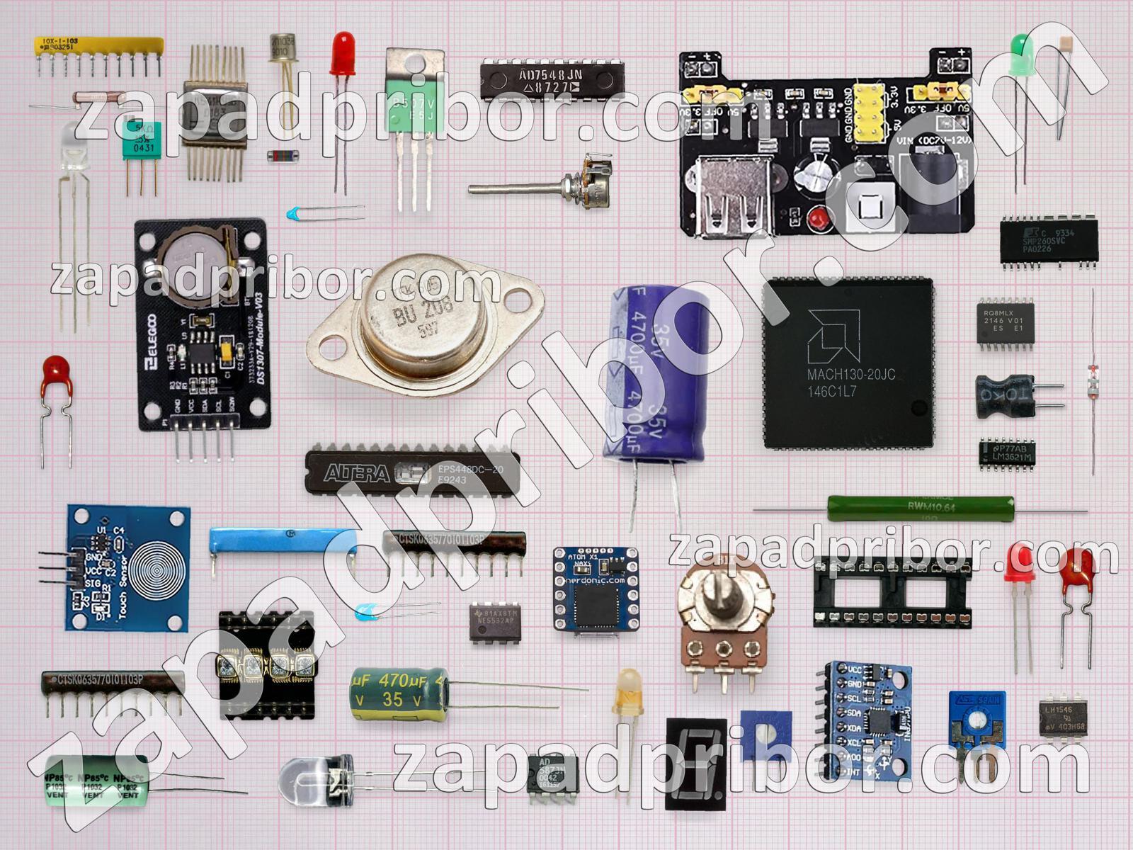 Кроме этих радиодеталей на нашем сайте вы сможете найти большой перечень компонентов. Осуществляйте поиск по основным типам радиодеталей таких как дисплей, фотодиод, конденсатор, колодки, экран, реле, преобразователь, транзистор, тиристор, диодный мост, резистор, трансформатор, кнопка, разъем, тумблер, соединитель, дроссель, адаптер, переключатель, микросхема, резонатор, усилитель, индикатор, светодиод, датчик, контакты, индуктивность, диод и другие.