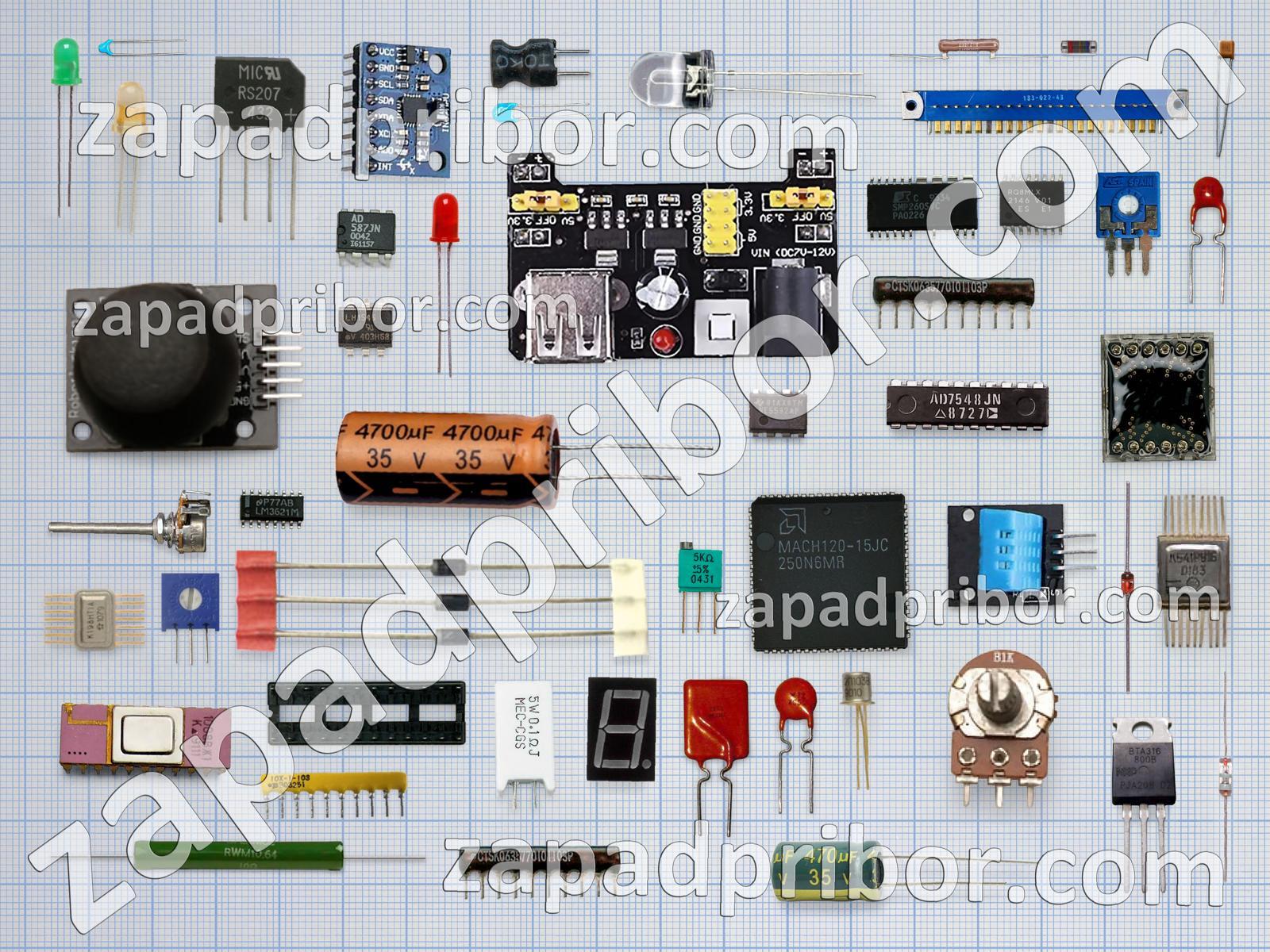 Кроме этих радиодеталей на нашем сайте вы сможете найти большой перечень компонентов. Осуществляйте поиск по основным типам радиодеталей таких как кнопка, экран, резистор, светодиод, соединитель, переключатель, резонатор, трансформатор, колодки, транзистор, фотодиод, разъем, тиристор, датчик, реле, тумблер, адаптер, микросхема, диод, дроссель, преобразователь, конденсатор, индикатор, диодный мост, дисплей, индуктивность, усилитель, контакты и другие.