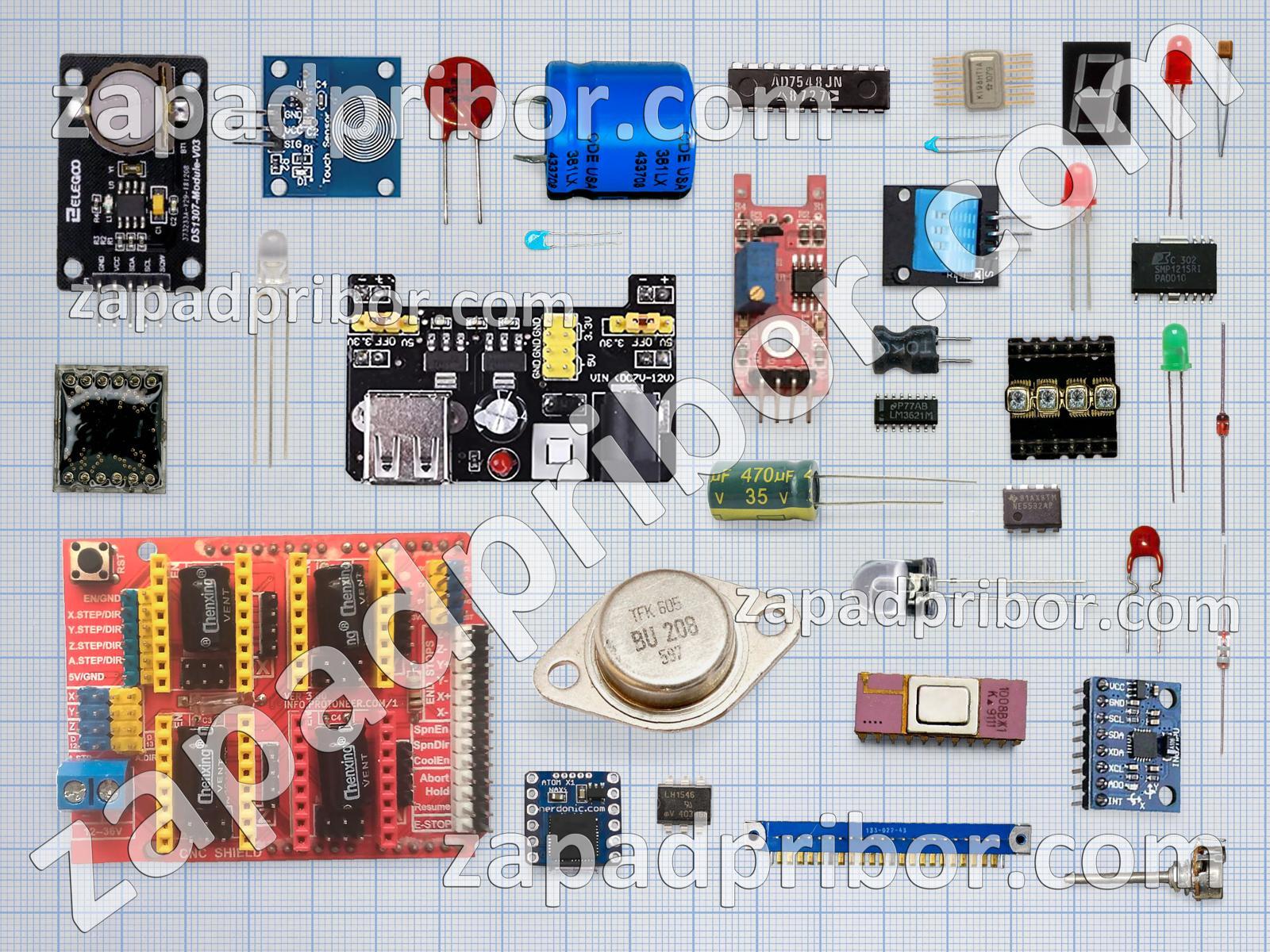 Кроме этих радиодеталей на нашем сайте вы сможете найти большой перечень компонентов. Осуществляйте поиск по основным типам радиодеталей таких как контакты, трансформатор, дисплей, усилитель, соединитель, индуктивность, светодиод, транзистор, резонатор, тумблер, реле, разъем, диод, индикатор, резистор, преобразователь, тиристор, кнопка, переключатель, адаптер, датчик, дроссель, экран, диодный мост, конденсатор, колодки, фотодиод, микросхема и другие.