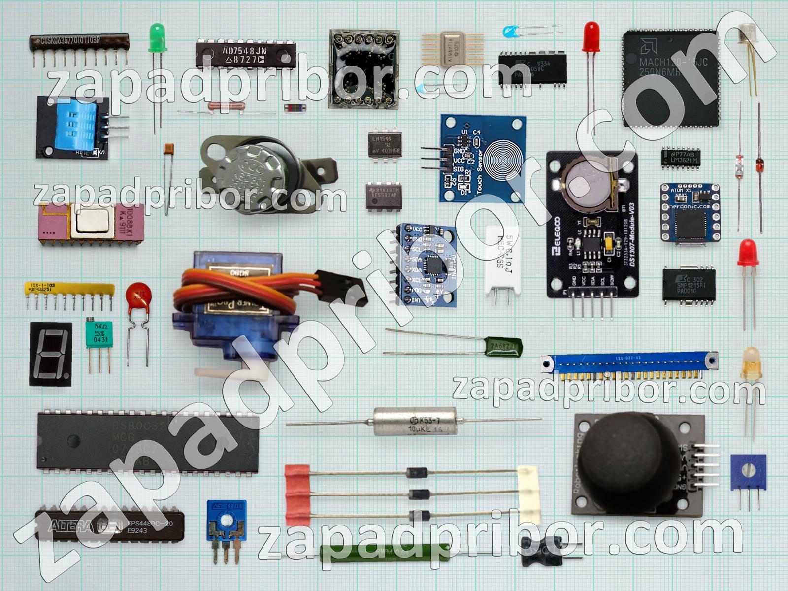 Кроме этих радиодеталей на нашем сайте вы сможете найти большой перечень компонентов. Осуществляйте поиск по основным типам радиодеталей таких как тиристор, реле, адаптер, диодный мост, светодиод, индикатор, индуктивность, транзистор, резонатор, фотодиод, усилитель, соединитель, разъем, датчик, микросхема, кнопка, диод, дроссель, контакты, конденсатор, колодки, резистор, тумблер, экран, дисплей, преобразователь, переключатель, трансформатор и другие.