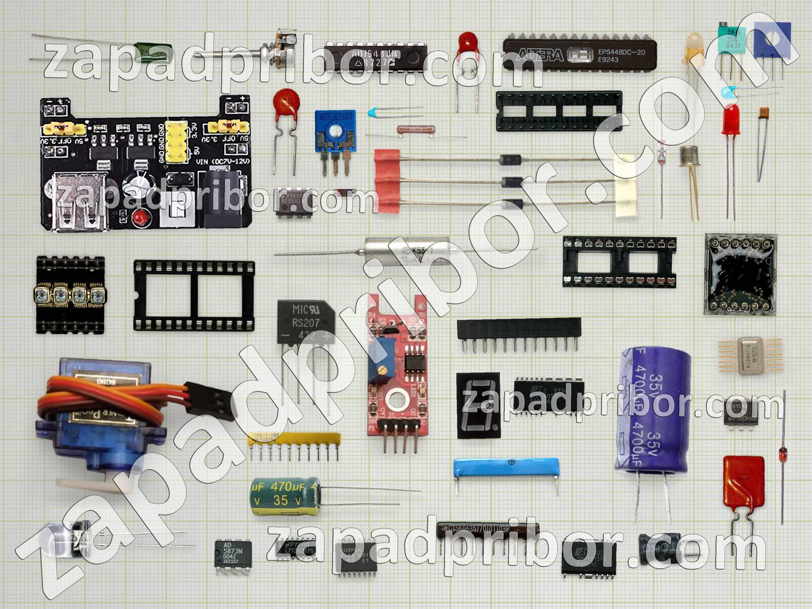 Кроме этих радиодеталей на нашем сайте вы сможете найти большой перечень компонентов. Осуществляйте поиск по основным типам радиодеталей таких как тиристор, индуктивность, усилитель, контакты, дисплей, резонатор, транзистор, конденсатор, переключатель, кнопка, колодки, преобразователь, светодиод, датчик, дроссель, резистор, экран, индикатор, адаптер, трансформатор, фотодиод, разъем, микросхема, соединитель, диодный мост, тумблер, реле, диод и другие.