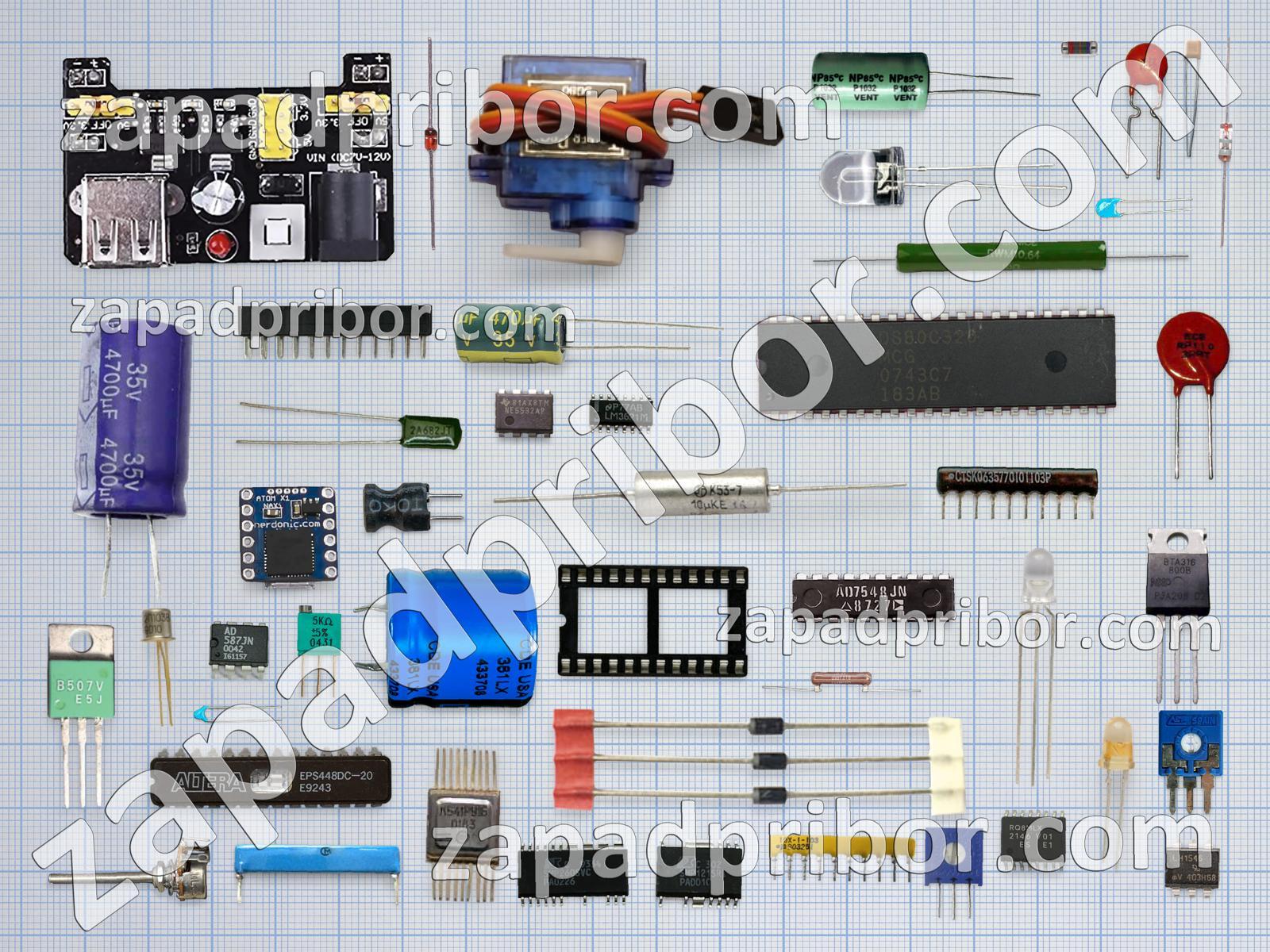Кроме этих радиодеталей на нашем сайте вы сможете найти большой перечень компонентов. Осуществляйте поиск по основным типам радиодеталей таких как тумблер, дроссель, диод, конденсатор, усилитель, тиристор, разъем, индуктивность, диодный мост, светодиод, дисплей, контакты, экран, датчик, реле, колодки, соединитель, трансформатор, кнопка, переключатель, резистор, микросхема, адаптер, преобразователь, резонатор, индикатор, транзистор, фотодиод и другие.