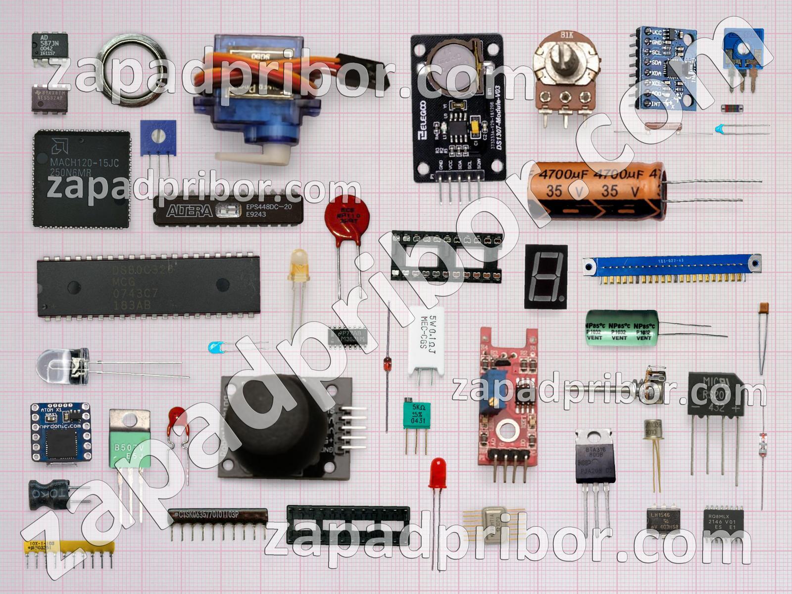 Кроме этих радиодеталей на нашем сайте вы сможете найти большой перечень компонентов. Осуществляйте поиск по основным типам радиодеталей таких как соединитель, экран, усилитель, индикатор, кнопка, реле, конденсатор, тумблер, разъем, контакты, трансформатор, диодный мост, транзистор, фотодиод, микросхема, колодки, преобразователь, датчик, дроссель, диод, светодиод, переключатель, тиристор, адаптер, резонатор, резистор, дисплей, индуктивность и другие.
