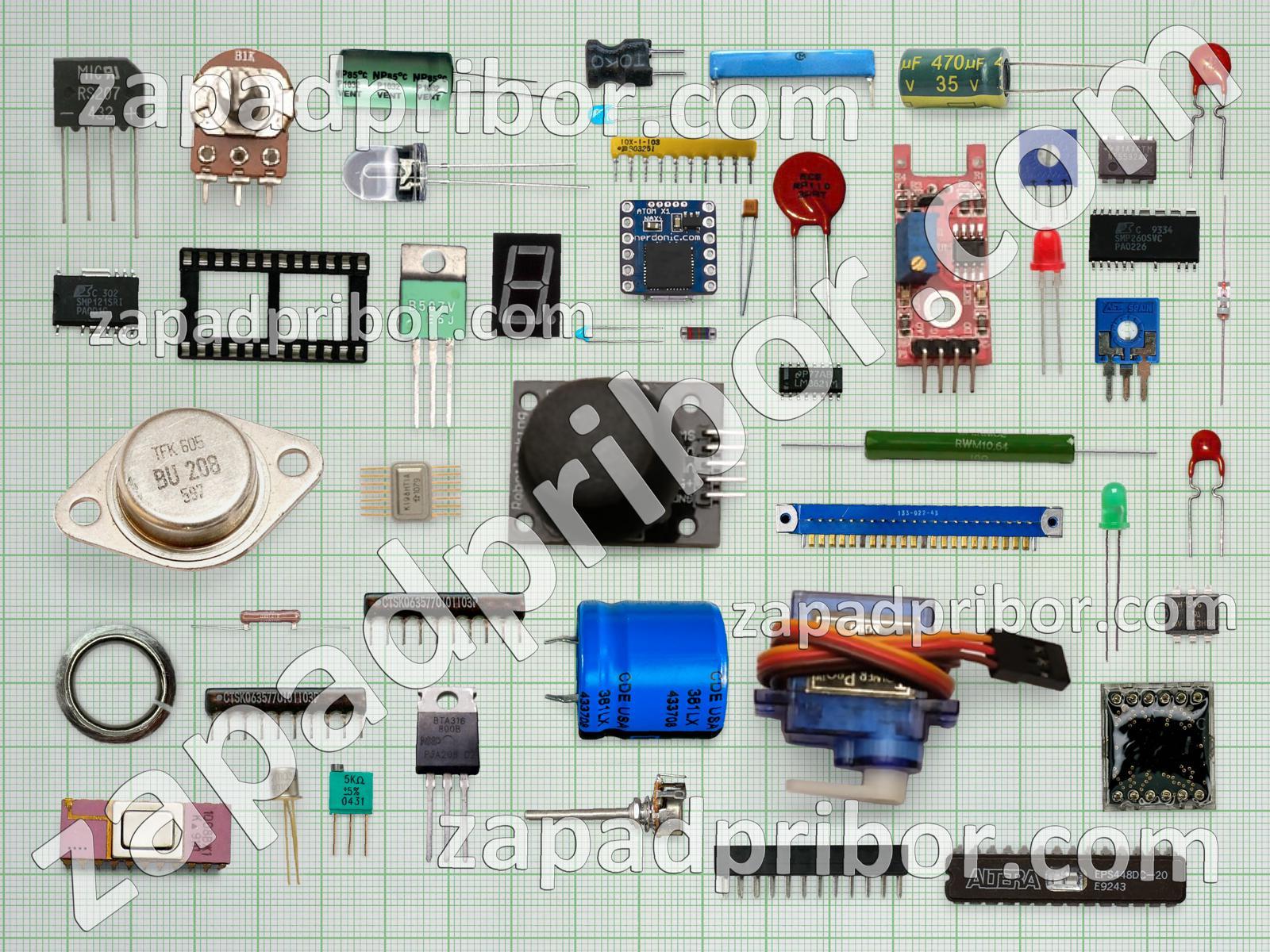 Кроме этих радиодеталей на нашем сайте вы сможете найти большой перечень компонентов. Осуществляйте поиск по основным типам радиодеталей таких как колодки, соединитель, кнопка, дроссель, переключатель, усилитель, датчик, транзистор, фотодиод, тиристор, дисплей, адаптер, контакты, индикатор, разъем, диодный мост, реле, резонатор, преобразователь, диод, экран, индуктивность, тумблер, светодиод, микросхема, трансформатор, конденсатор, резистор и другие.