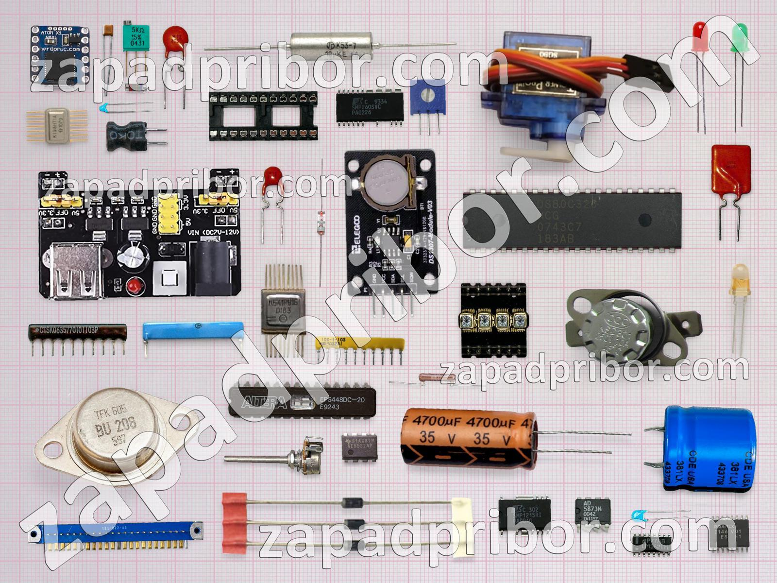 Кроме этих радиодеталей на нашем сайте вы сможете найти большой перечень компонентов. Осуществляйте поиск по основным типам радиодеталей таких как колодки, экран, трансформатор, индикатор, реле, разъем, конденсатор, датчик, кнопка, резонатор, усилитель, тиристор, адаптер, переключатель, дроссель, резистор, преобразователь, диод, соединитель, контакты, светодиод, дисплей, микросхема, тумблер, транзистор, фотодиод, индуктивность, диодный мост и другие.