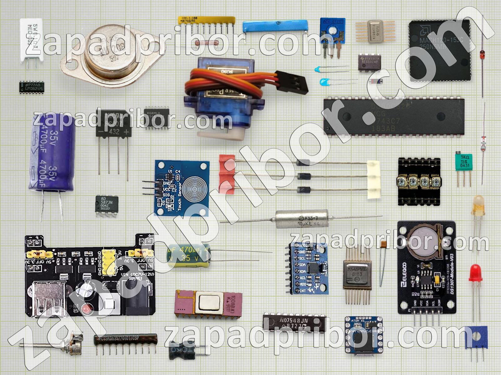 Кроме этих радиодеталей на нашем сайте вы сможете найти большой перечень компонентов. Осуществляйте поиск по основным типам радиодеталей таких как транзистор, переключатель, соединитель, индикатор, трансформатор, разъем, дроссель, фотодиод, диодный мост, индуктивность, микросхема, датчик, тиристор, тумблер, конденсатор, контакты, дисплей, резонатор, адаптер, резистор, колодки, кнопка, светодиод, реле, усилитель, экран, преобразователь, диод и другие.