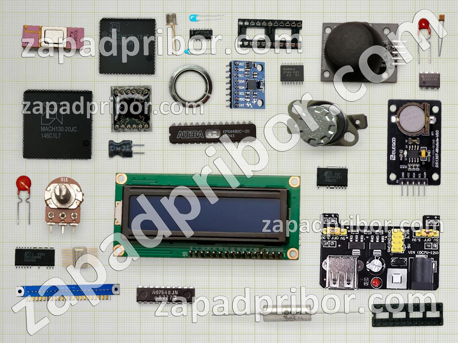 Кроме этих радиодеталей на нашем сайте вы сможете найти большой перечень компонентов. Осуществляйте поиск по основным типам радиодеталей таких как микросхема, колодки, адаптер, соединитель, разъем, усилитель, контакты, тумблер, фотодиод, экран, индуктивность, диод, реле, тиристор, кнопка, светодиод, резонатор, трансформатор, дисплей, дроссель, транзистор, диодный мост, индикатор, переключатель, резистор, конденсатор, датчик, преобразователь и другие.
