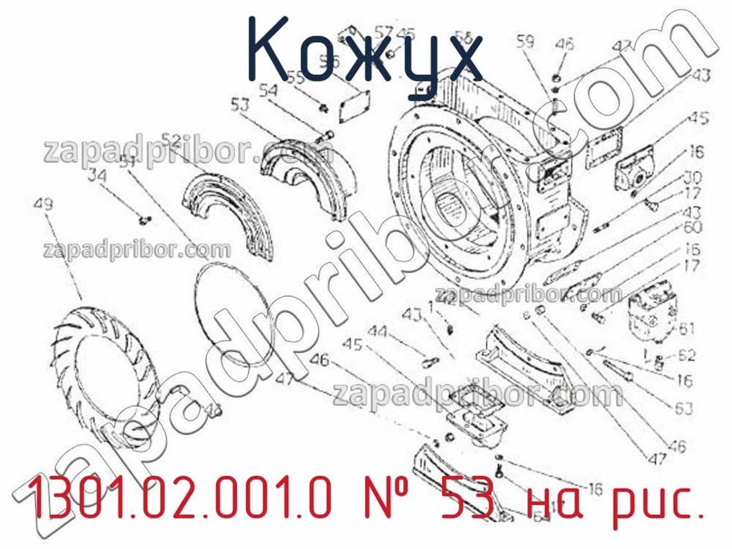 Наш отдел технического контроля в свою очередь гарантирует отсутствие какого-либо брака или других проблем с товаром в технической документации и т.д. Если хотите приобрести 1301.02.001.0 – обратитесь в наш отдел продаж. Интересует цена, наличие товара, гарантийные условия или какая-либо дополнительная информация о товаре - обратитесь за указанным номером телефона. Кожух теплоизоляционный 1301.02.001.0, номер 53 на чертеже, Турбокомпрессор 00гр. — 061 и другие запасные части для , а также другие кожухи и похожие изделия представлены на сайте zapadpribor.com.