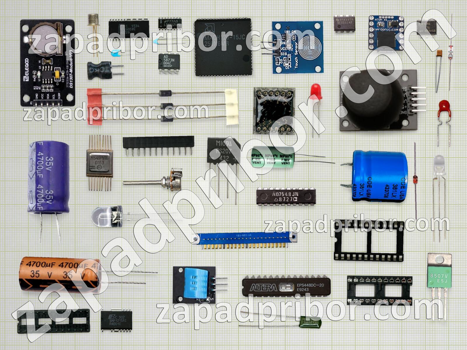 Кроме этих радиодеталей на нашем сайте вы сможете найти большой перечень компонентов. Осуществляйте поиск по основным типам радиодеталей таких как преобразователь, резонатор, фотодиод, контакты, диод, резистор, светодиод, индуктивность, транзистор, индикатор, диодный мост, переключатель, микросхема, тиристор, дроссель, конденсатор, дисплей, кнопка, разъем, датчик, адаптер, усилитель, трансформатор, соединитель, тумблер, колодки, реле, экран и другие.
