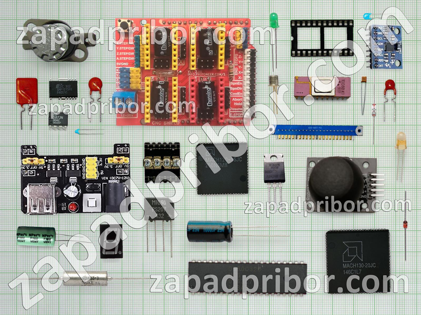 Кроме этих радиодеталей на нашем сайте вы сможете найти большой перечень компонентов. Осуществляйте поиск по основным типам радиодеталей таких как соединитель, диодный мост, микросхема, дроссель, адаптер, индикатор, конденсатор, тиристор, реле, преобразователь, тумблер, резистор, дисплей, контакты, резонатор, экран, фотодиод, транзистор, индуктивность, датчик, усилитель, светодиод, трансформатор, кнопка, диод, разъем, переключатель, колодки и другие.