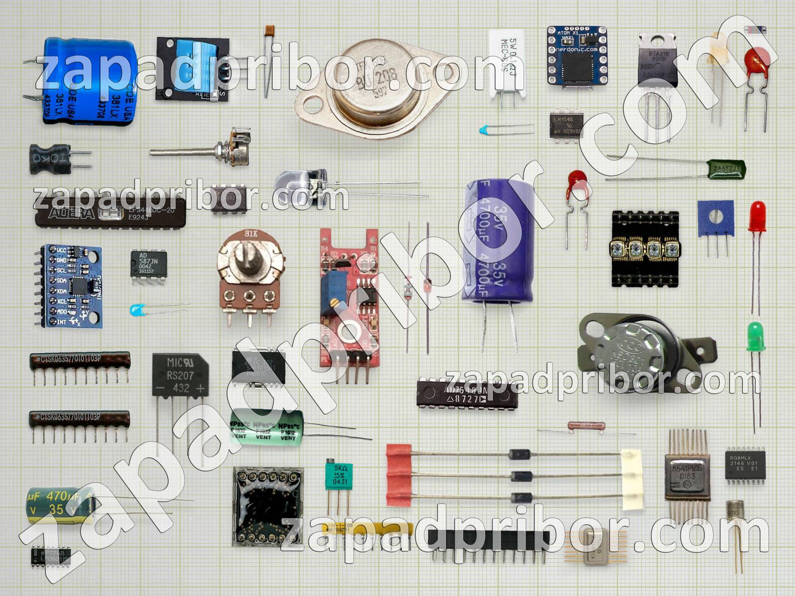 Кроме этих радиодеталей на нашем сайте вы сможете найти большой перечень компонентов. Осуществляйте поиск по основным типам радиодеталей таких как индуктивность, тиристор, экран, адаптер, усилитель, дисплей, диодный мост, разъем, транзистор, трансформатор, микросхема, дроссель, колодки, фотодиод, датчик, конденсатор, кнопка, контакты, индикатор, тумблер, реле, соединитель, диод, резонатор, резистор, преобразователь, светодиод, переключатель и другие.