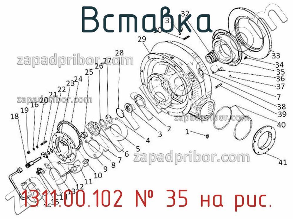 Наш отдел технического контроля гарантирует отсутствие брака или других несоответствий в технической документации или комплектации всех вставок представленных на нашем сайте. Чтобы заказать 1311.00.102 обращайтесь в отдел продаж. Чтобы узнать цену, наличие, сроки поставки, срок гарантии и другие вопросы позвоните по телефонам указанным в контактах или оставьте заявку через форму обратной связи. Вставка 1311.00.102, номер 35 на чертеже, Турбокомпрессор 00гр. — 060 и другие запасные части для , а также другие вставки и похожие изделия представлены на сайте zapadpribor.com.