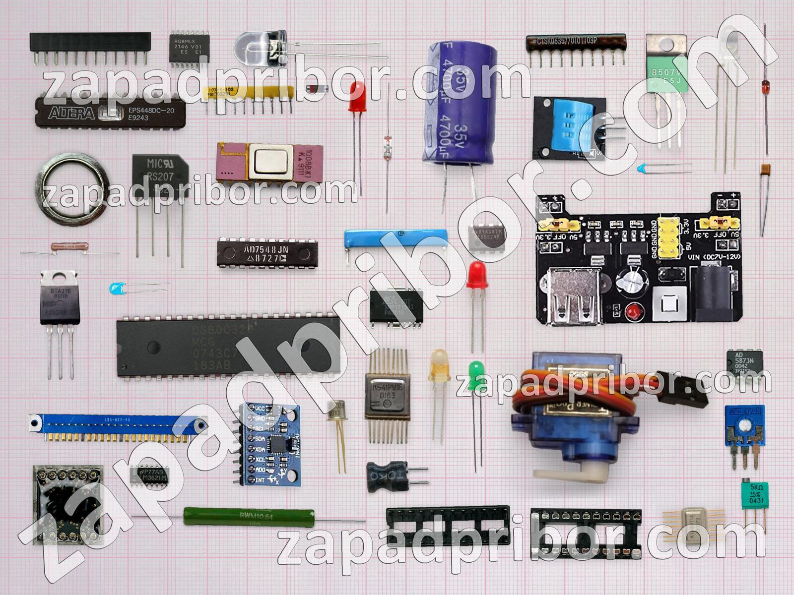 Кроме этих радиодеталей на нашем сайте вы сможете найти большой перечень компонентов. Осуществляйте поиск по основным типам радиодеталей таких как трансформатор, фотодиод, микросхема, соединитель, дроссель, конденсатор, усилитель, дисплей, адаптер, контакты, реле, тумблер, транзистор, резистор, резонатор, диодный мост, кнопка, индикатор, диод, светодиод, переключатель, колодки, тиристор, датчик, индуктивность, разъем, экран, преобразователь и другие.