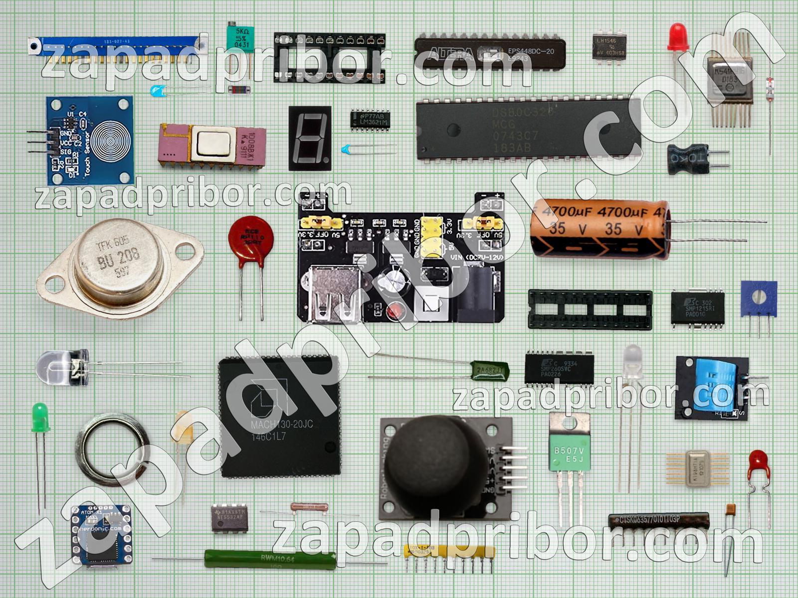 Кроме этих радиодеталей на нашем сайте вы сможете найти большой перечень компонентов. Осуществляйте поиск по основным типам радиодеталей таких как тиристор, датчик, дисплей, транзистор, светодиод, кнопка, конденсатор, резонатор, соединитель, реле, переключатель, резистор, разъем, экран, преобразователь, контакты, дроссель, диод, колодки, микросхема, адаптер, трансформатор, диодный мост, индикатор, индуктивность, тумблер, усилитель, фотодиод и другие.