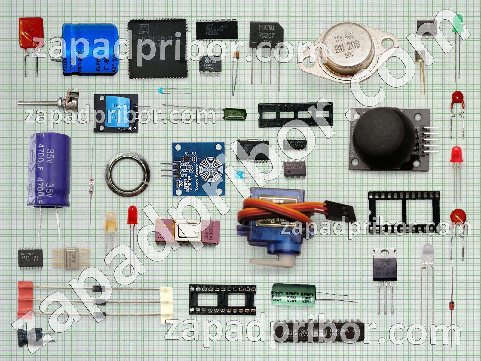 Кроме этих радиодеталей на нашем сайте вы сможете найти большой перечень компонентов. Осуществляйте поиск по основным типам радиодеталей таких как конденсатор, контакты, светодиод, фотодиод, колодки, микросхема, индикатор, тумблер, разъем, преобразователь, дисплей, трансформатор, соединитель, реле, индуктивность, диод, кнопка, переключатель, адаптер, экран, тиристор, резистор, диодный мост, транзистор, резонатор, дроссель, датчик, усилитель и другие.