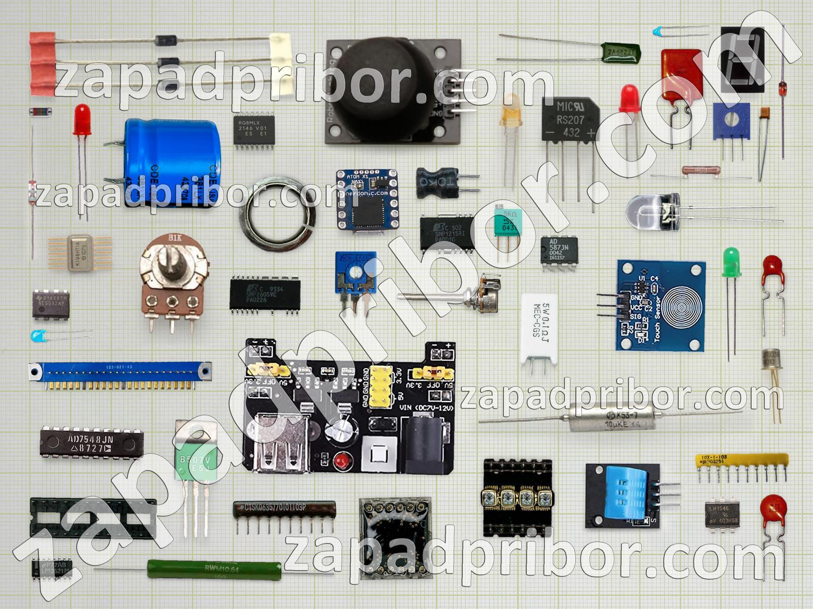 Кроме этих радиодеталей на нашем сайте вы сможете найти большой перечень компонентов. Осуществляйте поиск по основным типам радиодеталей таких как преобразователь, колодки, датчик, индуктивность, кнопка, контакты, фотодиод, экран, микросхема, диодный мост, трансформатор, транзистор, диод, усилитель, светодиод, резонатор, дисплей, резистор, реле, конденсатор, переключатель, тиристор, разъем, индикатор, тумблер, соединитель, адаптер, дроссель и другие.