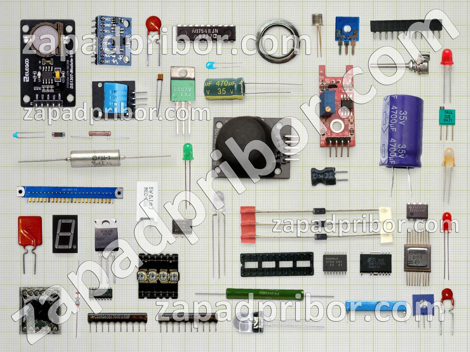 Кроме этих радиодеталей на нашем сайте вы сможете найти большой перечень компонентов. Осуществляйте поиск по основным типам радиодеталей таких как резонатор, микросхема, диодный мост, кнопка, усилитель, конденсатор, фотодиод, транзистор, индуктивность, экран, тиристор, дисплей, тумблер, трансформатор, контакты, светодиод, соединитель, индикатор, колодки, датчик, переключатель, реле, разъем, резистор, дроссель, диод, преобразователь, адаптер и другие.