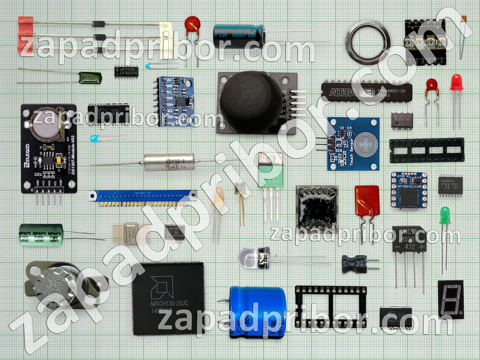 Кроме этих радиодеталей на нашем сайте вы сможете найти большой перечень компонентов. Осуществляйте поиск по основным типам радиодеталей таких как дисплей, датчик, тумблер, разъем, адаптер, трансформатор, тиристор, кнопка, переключатель, светодиод, индикатор, преобразователь, фотодиод, дроссель, экран, колодки, индуктивность, транзистор, реле, конденсатор, резонатор, соединитель, диодный мост, контакты, диод, усилитель, микросхема, резистор и другие.
