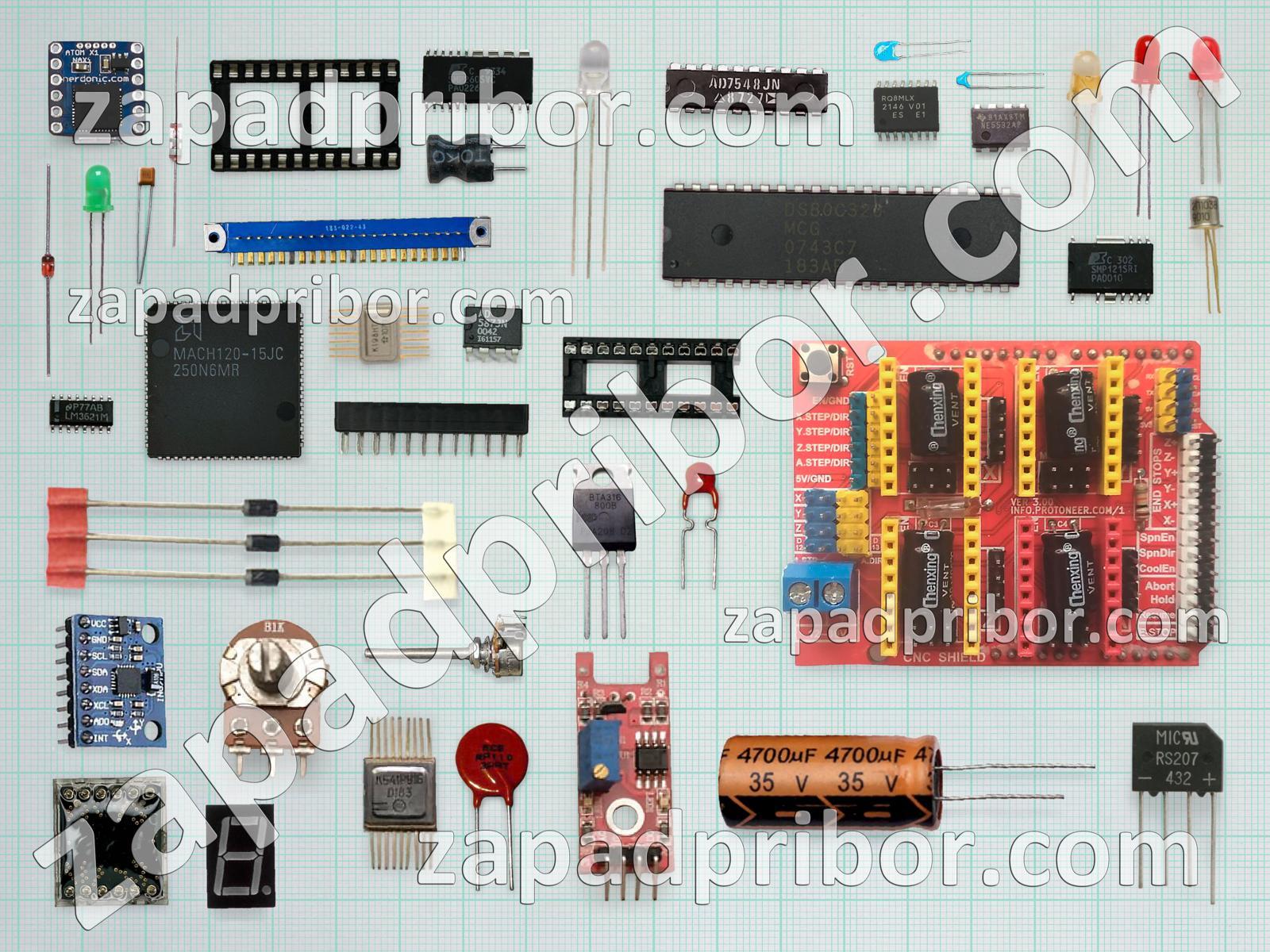 Кроме этих радиодеталей на нашем сайте вы сможете найти большой перечень компонентов. Осуществляйте поиск по основным типам радиодеталей таких как адаптер, конденсатор, микросхема, тумблер, светодиод, переключатель, дроссель, диод, фотодиод, трансформатор, контакты, тиристор, реле, колодки, транзистор, индикатор, усилитель, экран, разъем, резонатор, соединитель, диодный мост, резистор, кнопка, индуктивность, дисплей, преобразователь, датчик и другие.