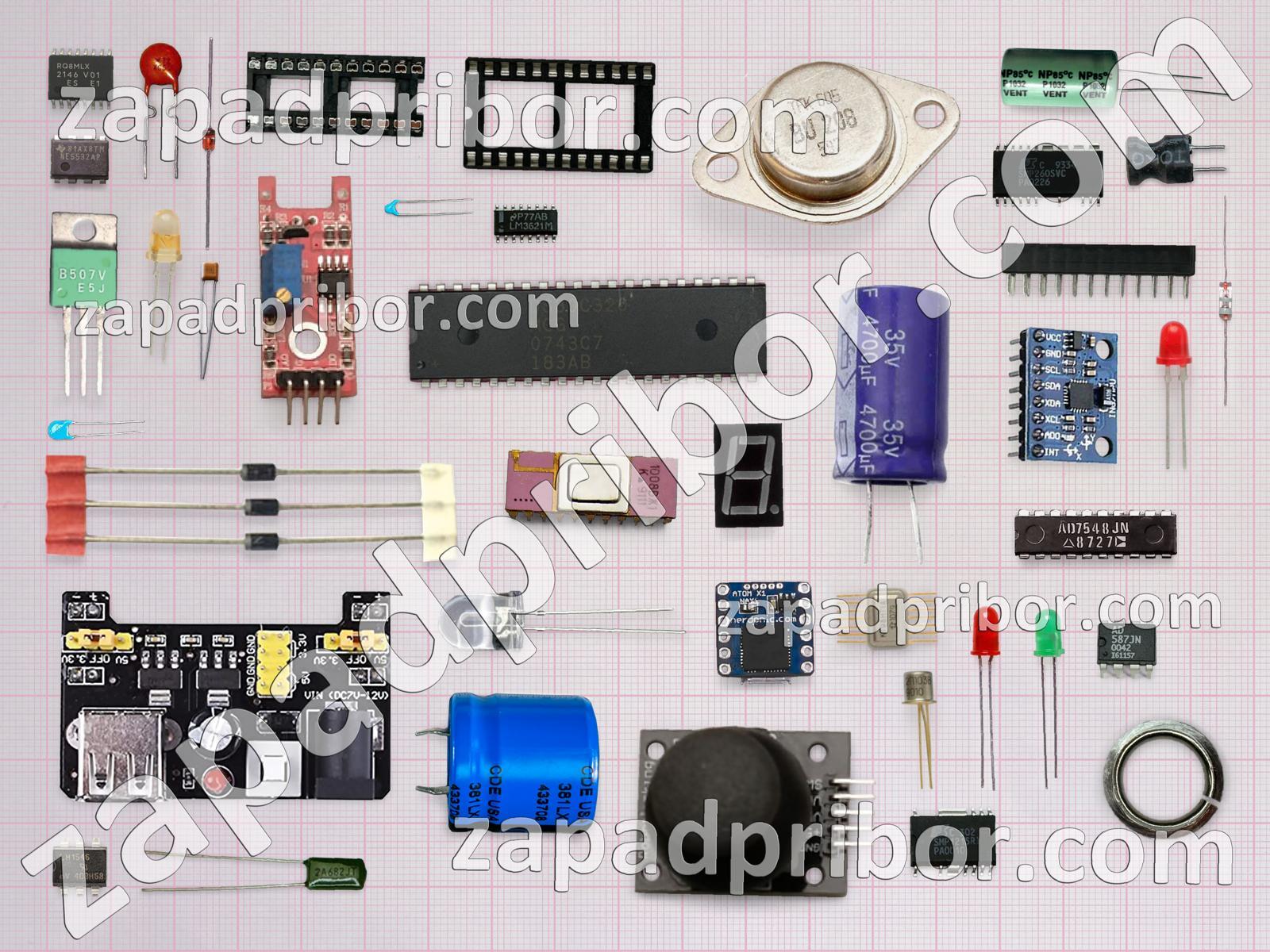 Кроме этих радиодеталей на нашем сайте вы сможете найти большой перечень компонентов. Осуществляйте поиск по основным типам радиодеталей таких как дисплей, тумблер, колодки, индикатор, дроссель, микросхема, экран, датчик, диодный мост, конденсатор, фотодиод, транзистор, трансформатор, реле, разъем, адаптер, индуктивность, тиристор, переключатель, контакты, светодиод, соединитель, кнопка, резистор, диод, резонатор, преобразователь, усилитель и другие.