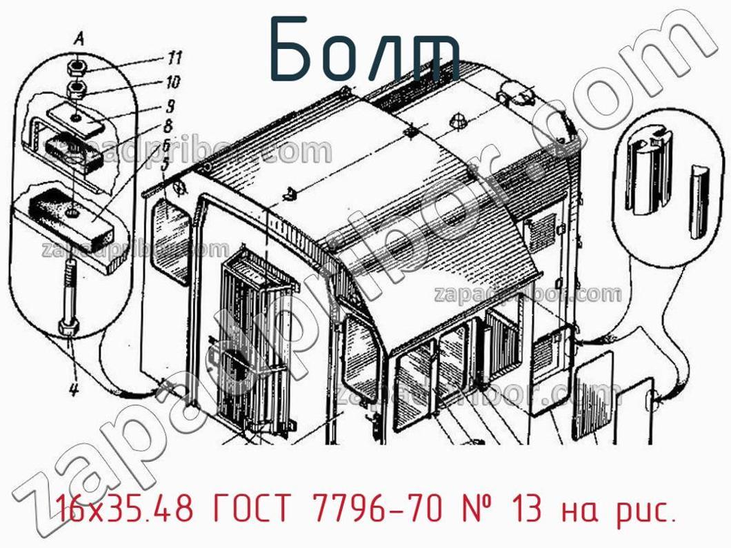 Наш отдел технического контроля перед отгрузкой тестирует каждый прибор в лаборатории на соответствие всем техническим характеристикам и требованиям. Чтобы заказать 16х35.48 ГОСТ 7796-70 свяжитесь с нашим отделом продаж. Также вы всегда можете позвонить нашим менеджерам чтобы получить более подробную информацию. Болт 16х35.48 ГОСТ 7796-70, номер 13 на чертеже, Каркас холодильной камеры ТЭМ2.50.31.000 и другие запасные части для , а также другие болты и похожие изделия представлены на сайте zapadpribor.com.