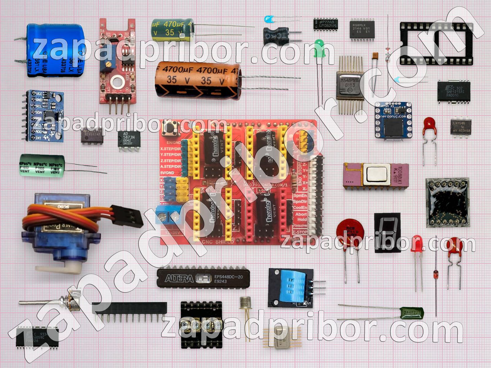 Кроме этих радиодеталей на нашем сайте вы сможете найти большой перечень компонентов. Осуществляйте поиск по основным типам радиодеталей таких как соединитель, адаптер, колодки, переключатель, резонатор, индикатор, датчик, кнопка, диод, тумблер, тиристор, разъем, усилитель, резистор, реле, дроссель, диодный мост, дисплей, трансформатор, конденсатор, транзистор, светодиод, преобразователь, экран, контакты, индуктивность, фотодиод, микросхема и другие.