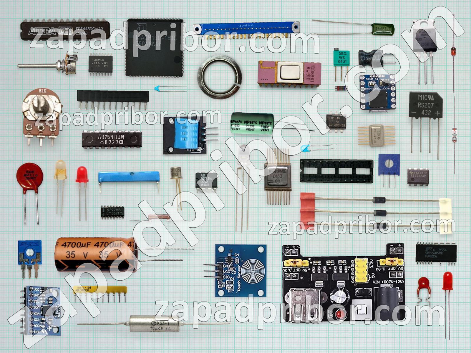 Кроме этих радиодеталей на нашем сайте вы сможете найти большой перечень компонентов. Осуществляйте поиск по основным типам радиодеталей таких как разъем, реле, индуктивность, кнопка, диод, переключатель, трансформатор, датчик, индикатор, светодиод, преобразователь, колодки, соединитель, конденсатор, резистор, дисплей, тиристор, транзистор, фотодиод, адаптер, микросхема, диодный мост, усилитель, резонатор, экран, контакты, тумблер, дроссель и другие.