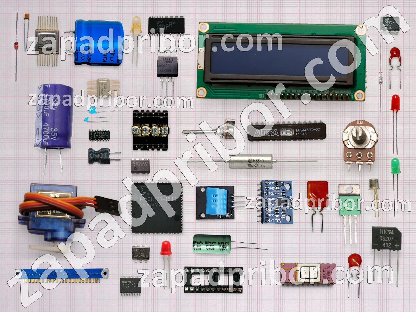 Кроме этих радиодеталей на нашем сайте вы сможете найти большой перечень компонентов. Осуществляйте поиск по основным типам радиодеталей таких как индуктивность, светодиод, индикатор, микросхема, усилитель, дисплей, реле, соединитель, экран, преобразователь, контакты, транзистор, кнопка, тиристор, колодки, разъем, трансформатор, фотодиод, диод, дроссель, датчик, тумблер, резонатор, конденсатор, диодный мост, адаптер, резистор, переключатель и другие.